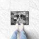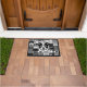 This design combines humorous elegance with a touch of pop art charm! The fierce-looking dog in the center is a real eye-catcher and conveys a clear message with the funny speech bubbles “Dirty Shoes?” and “How dare you!”. Symmetrically arranged graphic elements in bento grid style - such as shoes, dynamic patterns and a space for personalizable text such as 'Welcome to the 'familyname' - make this design a unique work of art. The black and white aesthetic creates a timeless and modern look that will enhance any entrance area. Perfect for families, animal lovers or design fans who want to combine humor and style.