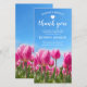 Personalized funeral thank you note on a flat card is a simple way to thank those that showed you comfort during your time of bereavement. This card features pink tulip flowers and an editable thank you template.