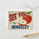 A charming Berkeley California vintage travel postcard featuring a lovely red apple, along with fun retro style text that says, "See you in Berkeley"