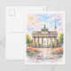 This stylish Watercolor postcard with the famous Brandenburg Gate and trendy city skyline will transport you to Berlin's historic beauty. Inspired by German architecture and culture, it's ideal for tourists and travelers as a distinctive memento, fashionable greeting, or unforgettable memento. The bustling capital of Germany and Europe is captured in this creative postcard.