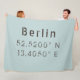 Berlin Germany longitude and latitude coordinates in distressed fonts give this a modern urban look
