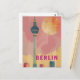This vintage-style poster showcases the iconic silhouette of Berlin’s TV Tower (Fernsehturm), standing tall against a minimalist retro background. The bold contrast and faded tones evoke the spirit of mid-century design, capturing the modernist elegance of Berlin’s skyline. A striking tribute to one of Germany’s most recognizable landmarks — perfect for lovers of vintage travel art and urban architecture.