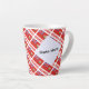 Latte mug has a tiled diagonally Bermudian flag with the word, BERMUDA beneath. White fractal of squiggly squares holds a spot for your name for added personalization or to create a customized gift. The flag is red with a Union Jack and the Bermuda coat-of-arms.