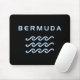 Stylized design shows three ocean or water waves and the word "Bermuda" above in a cool modern text. Design is all-blue.