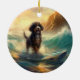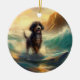 Bernedoodle Beach Surfing Painting Ceramic Ornament