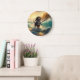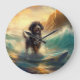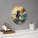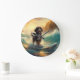 Bernedoodle Beach Surfing Painting Large Clock