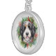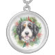 Bernedoodle Christmas Wreath Festive Pup Silver Plated Necklace