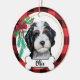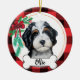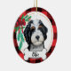 This Tricolor bernedoodle ornament with red buffalo background and Christmas garland and bow - Art was hand painted by me and made available as this adorable ornament! Add any text (suggested: "I ❤️ my doodle" or your sweeties name)
