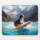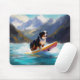 Bernese Mountain Beach Surfing Painting Mouse Pad