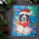 Bernese Mountain Breed Dog Christmas feature a watercolor of a Bernese Mountain with a red Santa's Hat, a red Christmas scarf, and a galaxy watercolor.