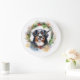 Bernese Mountain Christmas Wreath Festive Pup Large Clock