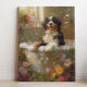 Art featuring a playful Bernese Mountain Dog enjoying a relaxing bath full of bubbles and beautiful flowers. This charming artwork adds a touch of warmth and personality to your space, making it feel more inviting and joyful.