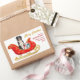 On these pretty Holiday decorative stickers, a Bernese Mountain Dog sits in a pretty red and gold decorative sleigh. Beside the dog sits gift packages tied with colorful bows. The gold script text at the right says "MERRY CHRISTMAS" and your custom text is in red. Perfect for your Christmas correspondence or gift packages! More Berner images, as well as other breeds, at Dog Village.