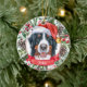This sophisticated ceramic Christmas ornament features a watercolor of a happy Bernese Mountain Dog in a Santa hat, surrounded by holiday greenery, pinecones and berries, with a red banner with your pet's name (or change to Merry Christmas). You can fully personalize this design by changing the greeting and year on the back in an elegant font. This is a stylish, yet inexpensive, custom Christmas ornament, and it's perfect for Bernese Mountain Dog lovers, dog lovers, or pet lovers.
