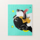 Contemporary Bernese Mountain dog art in flat color on jigsaw puzzles with background color that can be customized online.