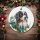 Bernese Mountain Dog Portrait Holly Wreath Ceramic Ornament