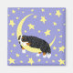 Sleepy Bernese Mountain dog draped over a crescent moon and surrounded by stars, artwork from Danes-R-Us.