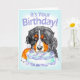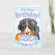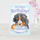 Celebrate a doggy or a people birthday with this Bernese Mountain Dog with his nose right in the middle of this birthday cake. Cake says "Happy Birthday" and is cute enough for everyday wear / display as well.