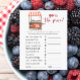 Baby shower party featuring watercolor illustration of berries on a cart.