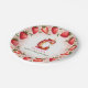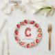Celebrate in style with this adorable strawberry-themed round paper plate! The elegant border features a circular arrangement of hand-painted strawberries, with a mix of whole and sliced berries, delicate green leaves, and tiny white blossoms. At the center, a beautifully illustrated letter "C" cake takes the spotlight, decorated with pink frosting, juicy strawberries, and a glowing birthday candle. The soft watercolor background blends seamless shades of blush and rosy pink, creating a festive and charming atmosphere. Perfect for strawberry-themed birthdays, fruit lovers, and summer celebrations. Pair with matching invitations and party decor for a coordinated look!