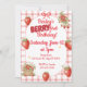 Berry 1st Birthday Watercolor Strawberry Invitation