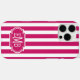 Berry and White Monogrammed Stripes Case-Mate iPhone Case