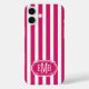 Berry and White Monogrammed Stripes Case-Mate iPhone Case