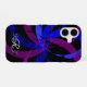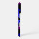 This iPhone 16 phone case features a blue purple color geometric circular theme. Personalize this product with custom text editing. iPhone model case change options are also available.
