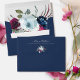 Elegant navy blue envelope with exquisite floral design inside with flowers in a beautiful blend of berry, burgundy, raspberry, cranberry, plum, dusty blue and navy hues. Area in top outside flap with your name(s) and address embellished with small floral spray. Text in white. If you rather have your own calligrapher address envelope later on, simply erase text from text boxes to delete text. Part of our "Berry, Blue and Burgundy Floral" collection.