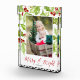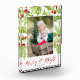 Handpainted watercolor holly berries and leaves in red and green frame your vertical or portrait oriented photo, bordered in white. "Merry & Bright" appears at the bottom in red modern calligraphy script lettering. Personalize with the year for a sweet holiday keepsake you'll want to display year after year.