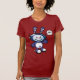 I love wearing a reprint of my colored pencil drawing of Annie the cat looking over the hillside. My illustration is based on a picture I took of Annie the manx cat. The printing turned out lovely, and the shirt is soft and thick. The American Apparel shirt run on the smaller size, so I always order a large or extra large.