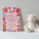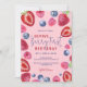 This cute first birthday party invitation features Berry First Birthday customizable typography with a berry frame and a pink background party invitation fit for a baby girl.