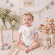 Centered around a graceful number “1,” the design brings together a light, vintage-inspired aesthetic—perfect for capturing those special first birthday moments.