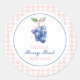 Berry First blueberry birthday Pink Bow Gingham Classic Round Sticker