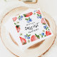 Fresh watercolor strawberry and blueberry illustration berry first birthday paper napkins.