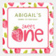 Personalized Strawberry Berry First Birthday stickers for baby girl turning sweet ONE. Watercolor strawberries, leaves and white floral accents. Berry 1st birthday party supplies.