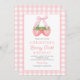Berry First Strawberry Pink Bow 1st Birthday Invitation