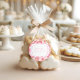 The sticker is made on wonderful paper and had no problem sticking to the bag that I purchased to put it on. I wanted to find a design that would be cute for the bride and groom and this one fit the bill as it has cute "bees" buzzing around and the wedding was taking place in a town called "Bee Cave". The packaging was great and protected the stickers. The website is easy to navigate and there are so many color choices. I had no problem finding a color that the bride was using on everything else selected. The design was adorable and there were many to choose from. You can make the figure as larger or smaller and you can place the photo and writting whereever you want to in the sticker. The printing is fabulous..better than expected.