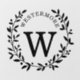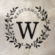 Classic design with large monogram in center with hand drawn leaves and branches.
