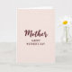 This greeting card features a calm, pale blush-pink background with a romantic, gentle feel that reads like a warm embrace ❤️. Centered in the middle, the word “Mother” appears large in flowing lettering, colored a rich berry-red that draws the eye first. Just beneath it, “HAPPY MOTHER’S DAY” is set in smaller, all-caps lettering in a simple sans-serif style, aligned neatly under the main word. The contrast between the soft backdrop and the deeper red text creates a tender, affectionate look without feeling busy. Around the outer edges, small circular dots in a darker rose tone are scattered like light confetti or dewdrops, adding a quiet celebratory touch 🌼. The dots stay mostly near the perimeter, leaving plenty of open space so the center message feels calm and close. The overall layout keeps the focus on the central words while the border-like speckles gently frame them. Tiny rose-colored circles lightly ring the margins, with the densest clusters near the corners.
