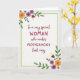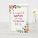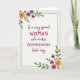 Designed with an off-white, softly textured background, this Mother’s Day card centers a berry-red message that feels affectionate and admiring ❤️. The wording reads “To a very special WOMAN who makes MOTHERHOOD look easy,” with “WOMAN” and “MOTHERHOOD” in all caps to stand out. The rest of the line uses a smoother, flowing letter style so the emphasis feels like a gentle squeeze of the hand rather than a shout. A pale green dashed border frames the text like a light stitched outline, keeping everything neatly contained. Floral clusters decorate the upper-left and lower-right corners, mixing golden-orange, deep purple, and magenta blooms with green leaves and curling tendrils 🌼. The flowers vary from simple daisy-like shapes to small bell-like blossoms, creating a soft, friendly rhythm around the words. The berry-red text sits centered inside the green dashed frame, with the corner florals balancing the layout on the off-white field.