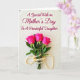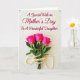 This card features a gentle Mother’s Day message at the top in a flowing berry-colored font, set on a pale, lightly textured background. The words sit centered in the upper area, leaving airy space around them so the message feels calm and caring ❤️. Below the text, three fuchsia rosebuds with velvety petals lean close together, suggesting a tender closeness like a shared hug. Deep green leaves and stems frame the flowers, adding a natural contrast that makes the blooms stand out. A strand of creamy round beads loops around the bouquet, its soft shine adding a touch of classic romance without overpowering the flowers 🌼. The off-white backdrop includes a subtle raised pattern that catches the light and adds depth behind the arrangement. Soft, diffused lighting highlights the rich pink tones of the roses and the gentle sheen of the beads against the textured, pale background.