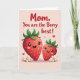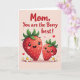 Designed with two berry-like cartoon characters in rich ruby red, the scene centers on a larger one at the left and a smaller companion tucked close beside it, their bright eyes and wide smiles aimed toward each other in a friendly, affectionate way ❤️. Pale seed-like dots speckle their rounded surfaces, and each has a leafy green top that adds a fresh contrast. They stand nestled in a low cluster of small white flowers with sunny yellow centers, like a garden patch at their feet 🌼. Above them, a short message sits near the top in deep crimson lettering, curved slightly to follow the open space of the background. The letters look smooth and flowing, standing out clearly against a soft pastel pink backdrop. Small heart shapes drift around the pair, scattered lightly across the upper and side areas to frame their closeness. The flowers form a gentle base along the bottom edge, with petals and yellow centers repeating in a neat row.
