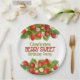 Super cute strawberry theme paper plate design with a border of sweet watercolor berries around the top and bottom edge of the plate with your personalized text in the center.