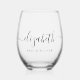 Give the best aunt ever a fun gift with this chic stemless wine glass, showcasing her name monogrammed in a stylish calligraphy script with swashes and "Best Aunt Ever" in elegant typography. Personalize whether she is addressed as Aunt, Auntie, Tia, etc.