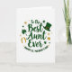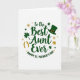 This greeting card features a white background with “to the Best Aunt Ever” centered in emerald green lettering, giving the message a gentle, affectionate focus 💚. Just below, “Happy St. Patrick’s Day” curves along the bottom in a deeper green, forming a soft arc that wraps the main words like a hug. Around the text, shamrocks are sprinkled in two finishes—green and metallic gold—like little tokens exchanged between close family and friends ☘️. In the upper right corner, a deep green leprechaun hat tilts at an angle, topped off with a gold buckle that catches the eye. Golden horseshoes sit among tiny star-like sparkles, adding small points of shine across the open white space. The green and gold accents feel like a shared wink of celebration, as if the card is passing along a bit of luck from one person to another. The layout stays airy and balanced, with most decorations circling the wording rather than crowding it. A cluster of gold stars and a small horseshoe glimmer near the lower edge beneath the curved holiday line.