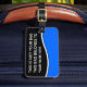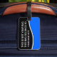 Clever custom luggage tags with words "not your bag". Designed for men or women you can personalize and let your baggage stand out while you're traveling, at the gym or anywhere you want to put an ID tag you can customize.