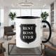 Best boss ever coffee mug. Cool mug for worlds greatest boss. Boss day appreciation logo. Black and white shield emblem with personalizable quote.