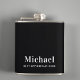 An elegant black flask for your boyfriend featuring his monogram name in classic white serif typography and "Best Boyfriend Ever" in simple modern typography.