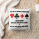 Are you a serious bridge player? Do you play with serious bridge partners? Showcase your wry bridge / duplicate bridge attitude with this throw pillow featuring the four card suits along with the following truism saying: "The Best Bridge Partners Think About Who Has Which Key Cards And How To Play Their Own Cards". Do a double-take on who the best bridge partners are with this bridge saying throw pillow!